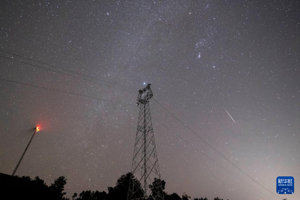 12月14日在贵州省黔东南苗族侗族自治州从江县天鹅山拍摄的双子座流星雨。
