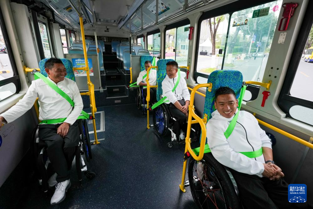 12月12日,西藏轮椅篮球队球员乘坐无障碍巴士抵达赛场。
