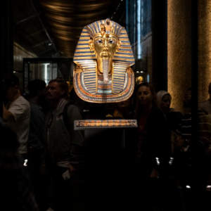 这是12月20日在埃及吉萨的大埃及博物馆拍摄的法老图坦卡蒙的黄金面具。
