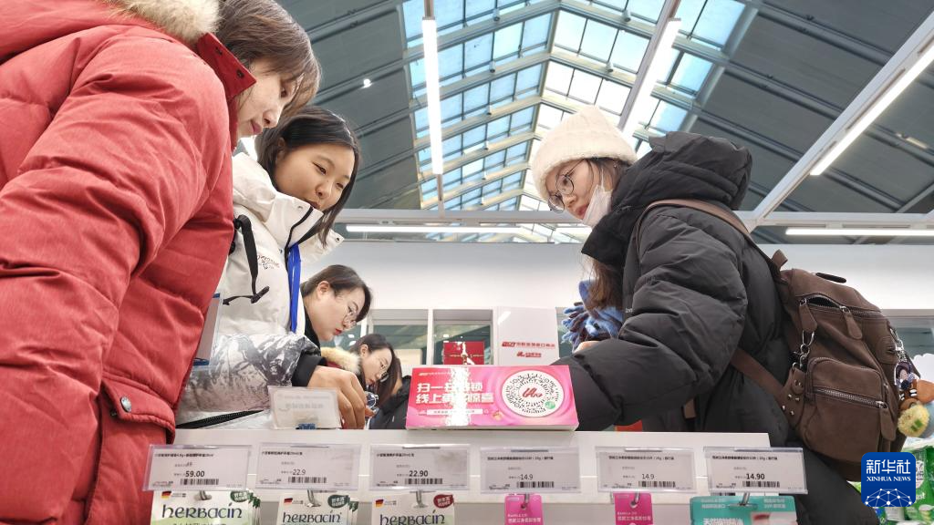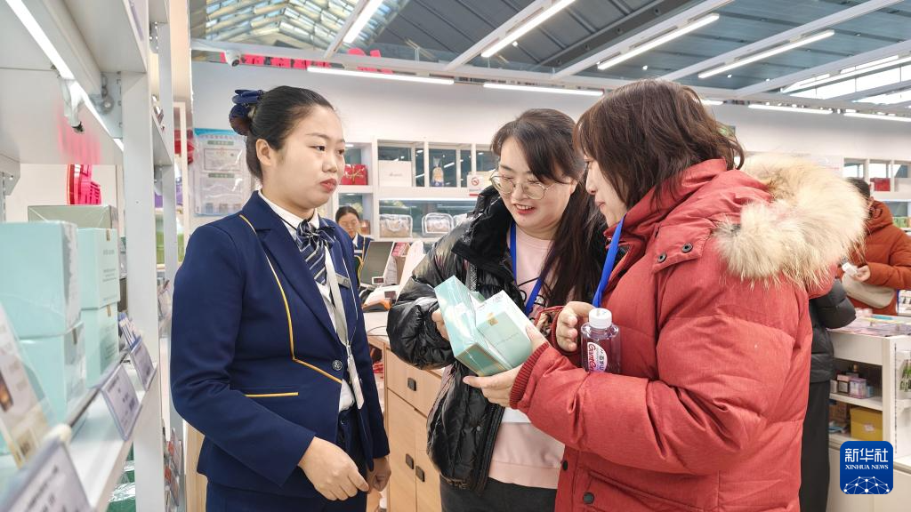 12月21日,消费者在银川火车站内的中欧班列进口商品(保税)店内选购商品。