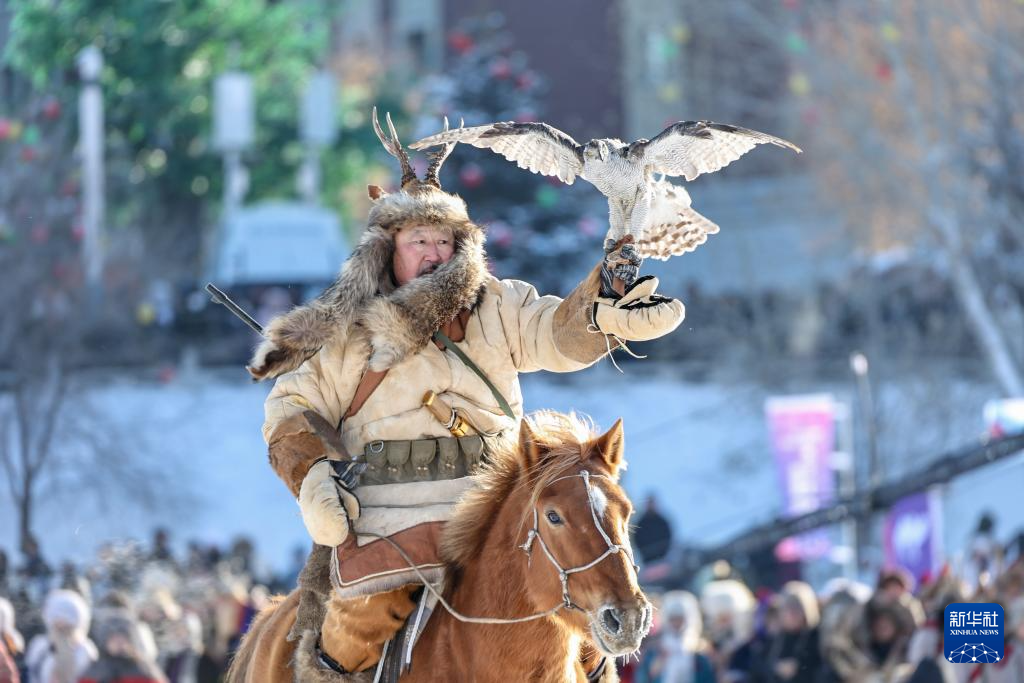 12月21日拍摄的冰雪那达慕开幕式上的民俗表演。