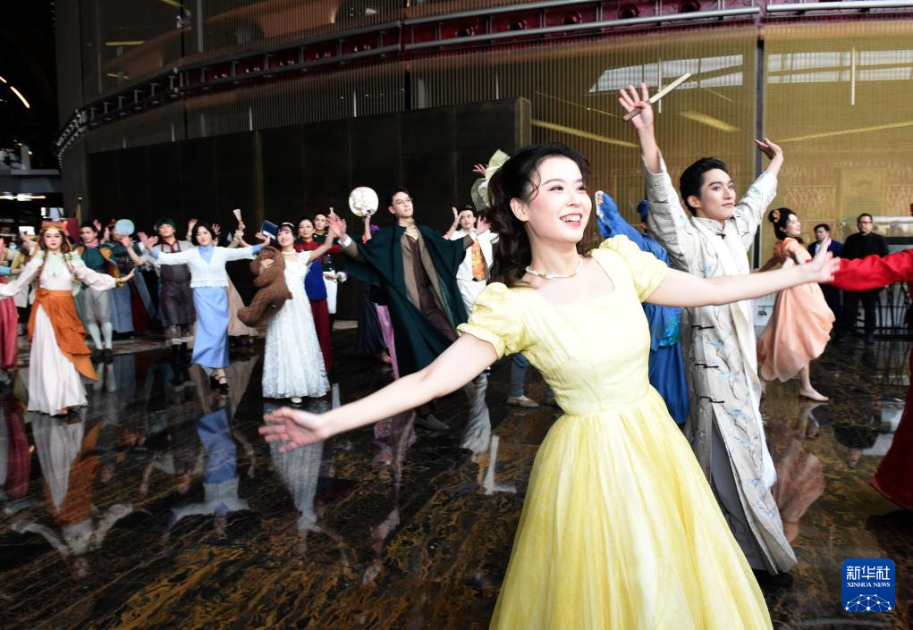 12月22日,演员在国家大剧院公共空间与观众互动。