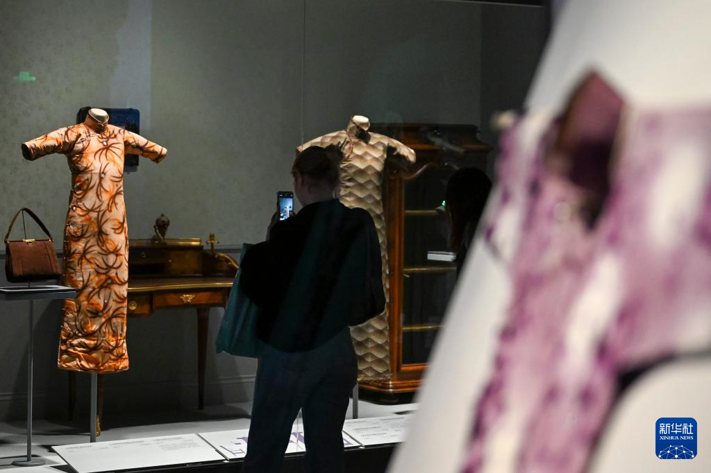 12月22日,观众在“摩登华影:海派旗袍与百年时尚”预展上欣赏展品。