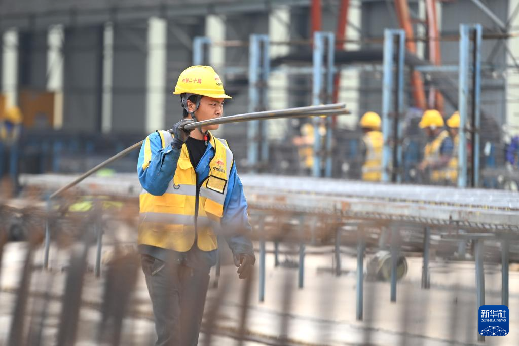 12月23日,中铁二十局的工人在柳州市柳江区三都镇鱼宜高速公路建设工地作业。
