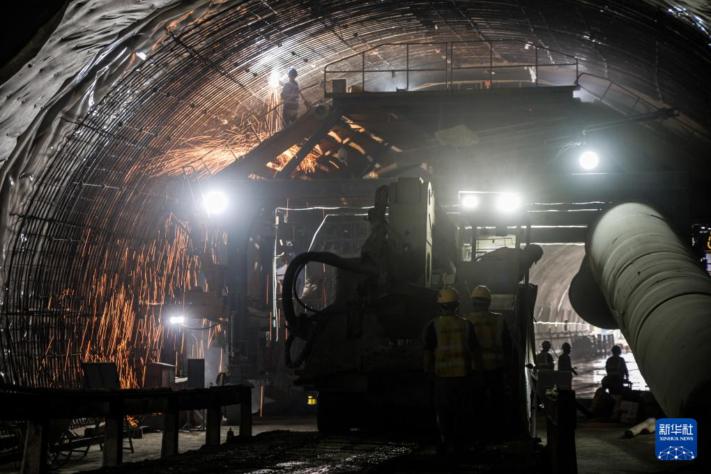 12月23日,施工人员在深圳外环田头山隧道群右线隧道和斜井隧道交汇断面开挖作业。