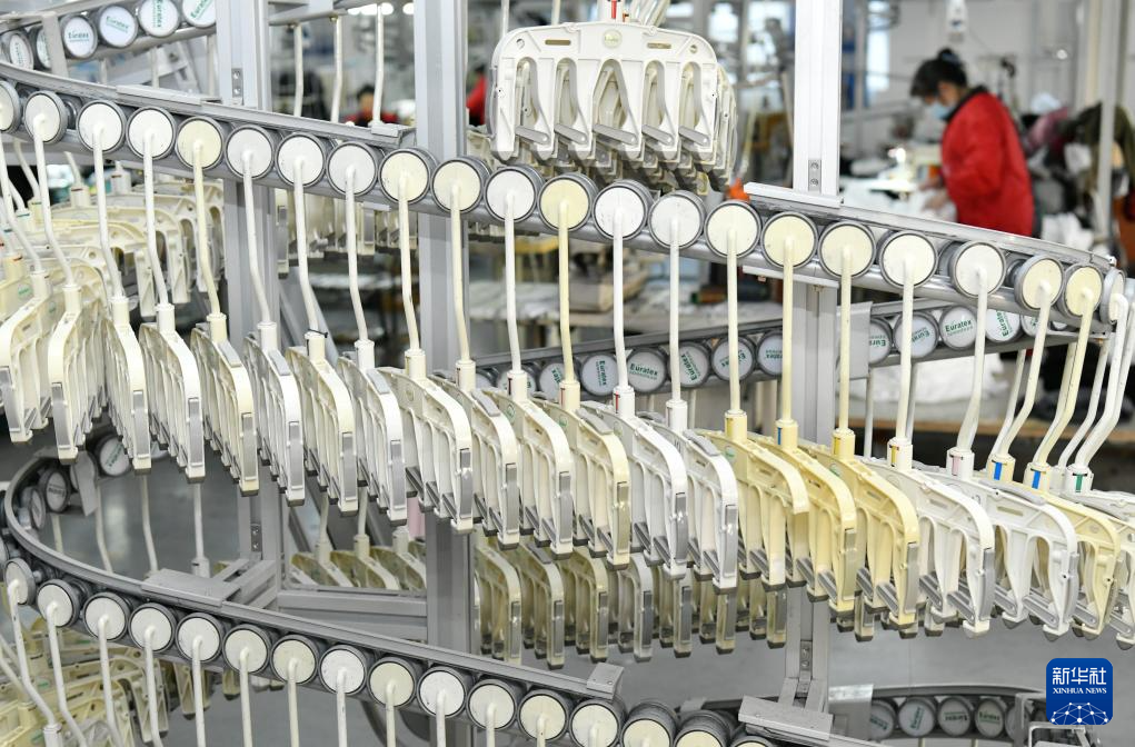 12月27日,工人在肃宁县一家针纺服装企业生产车间工作。