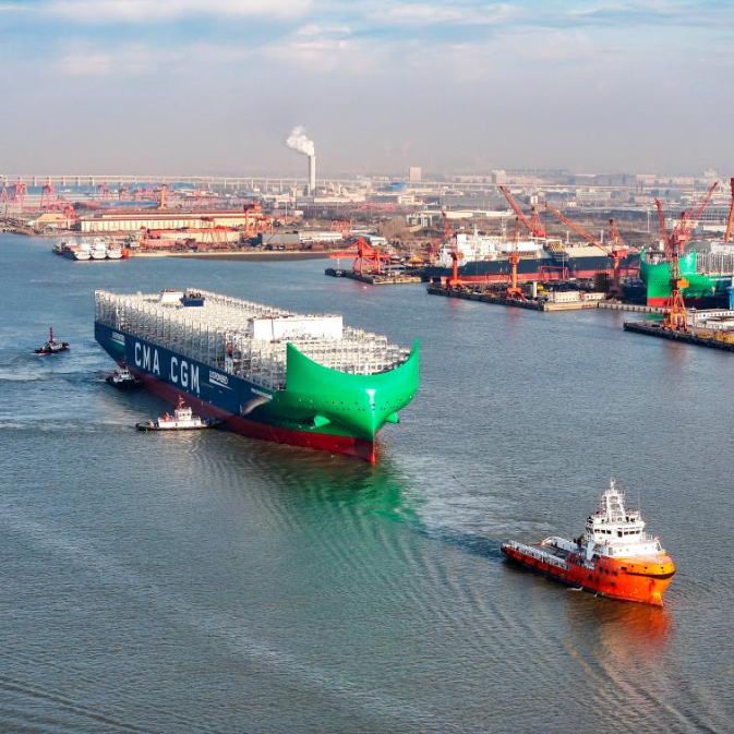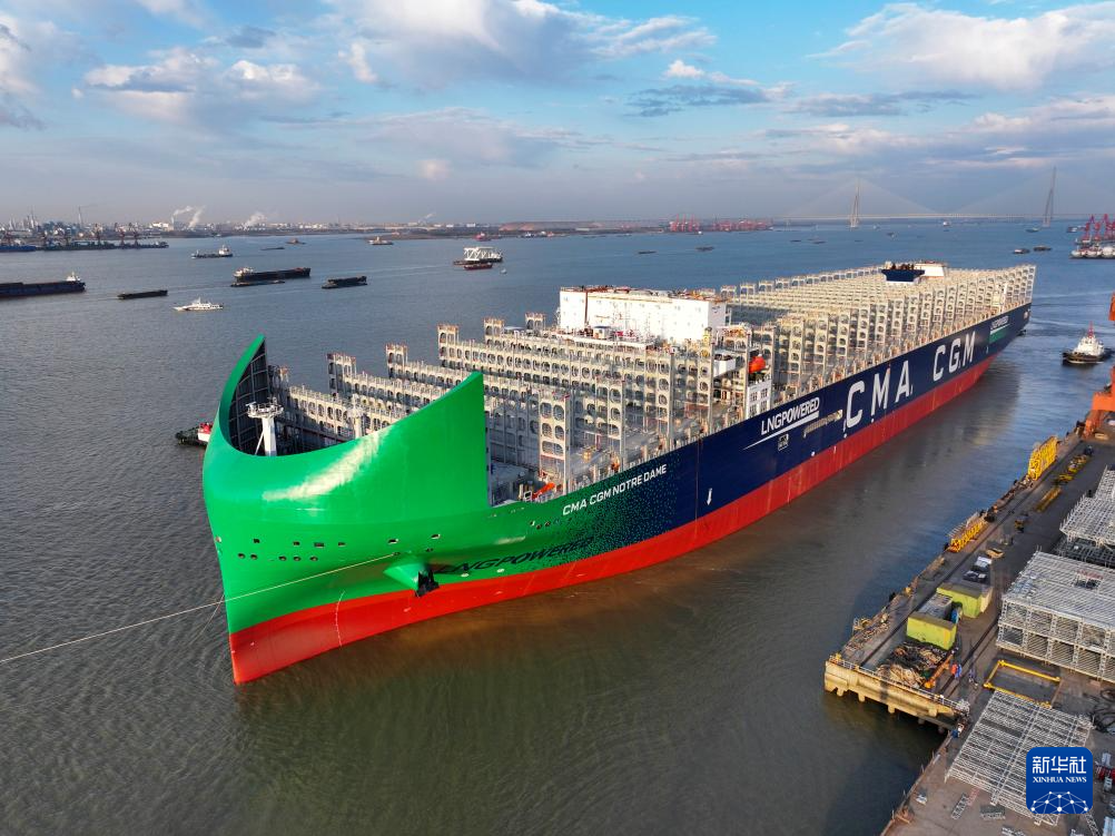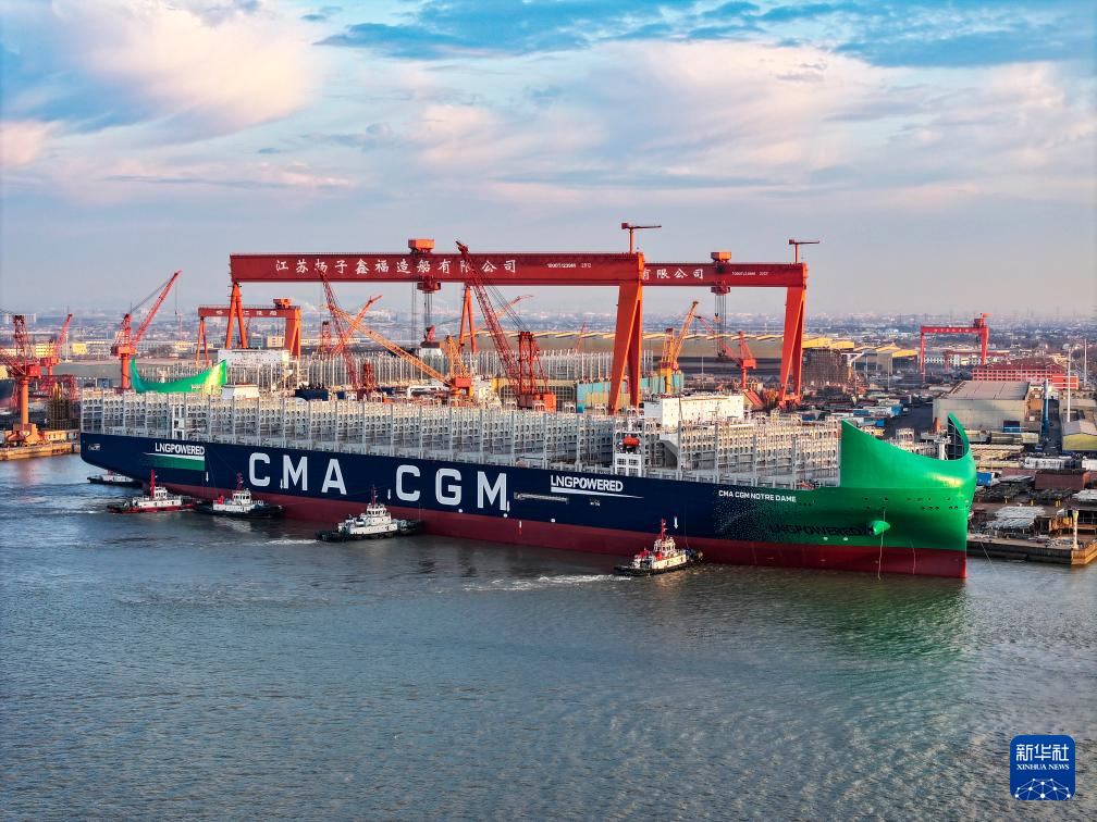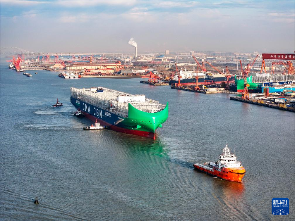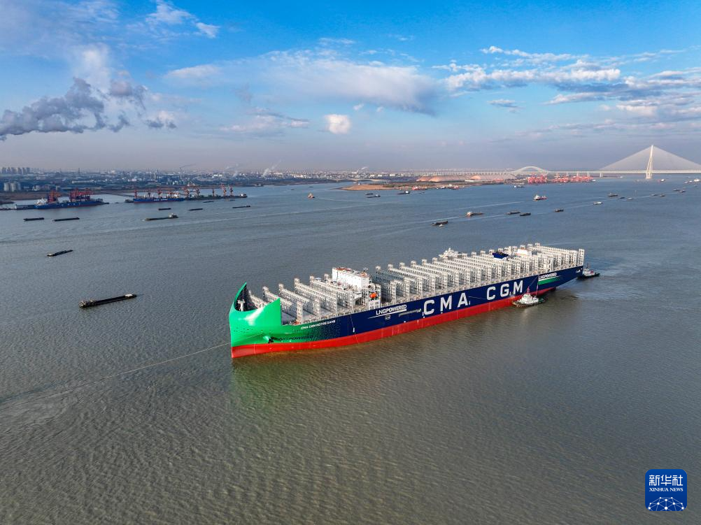 江苏泰州:超大型双燃料集装箱船顺利离港-新华网