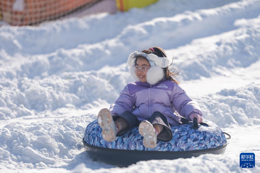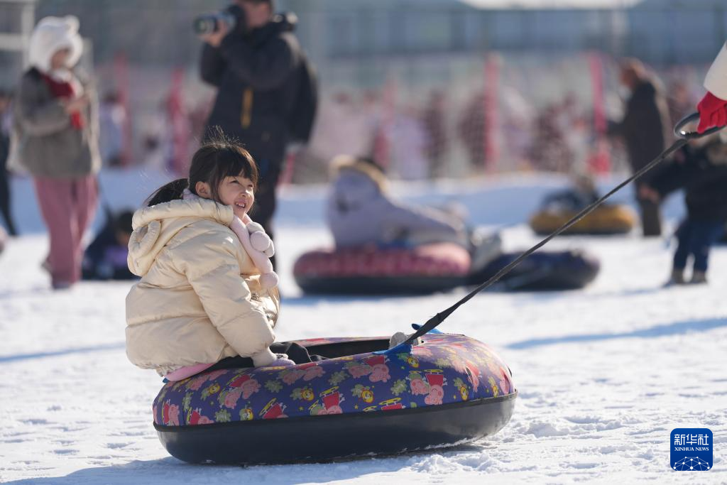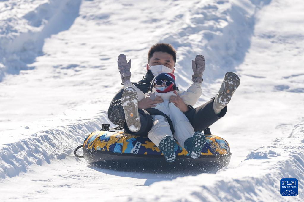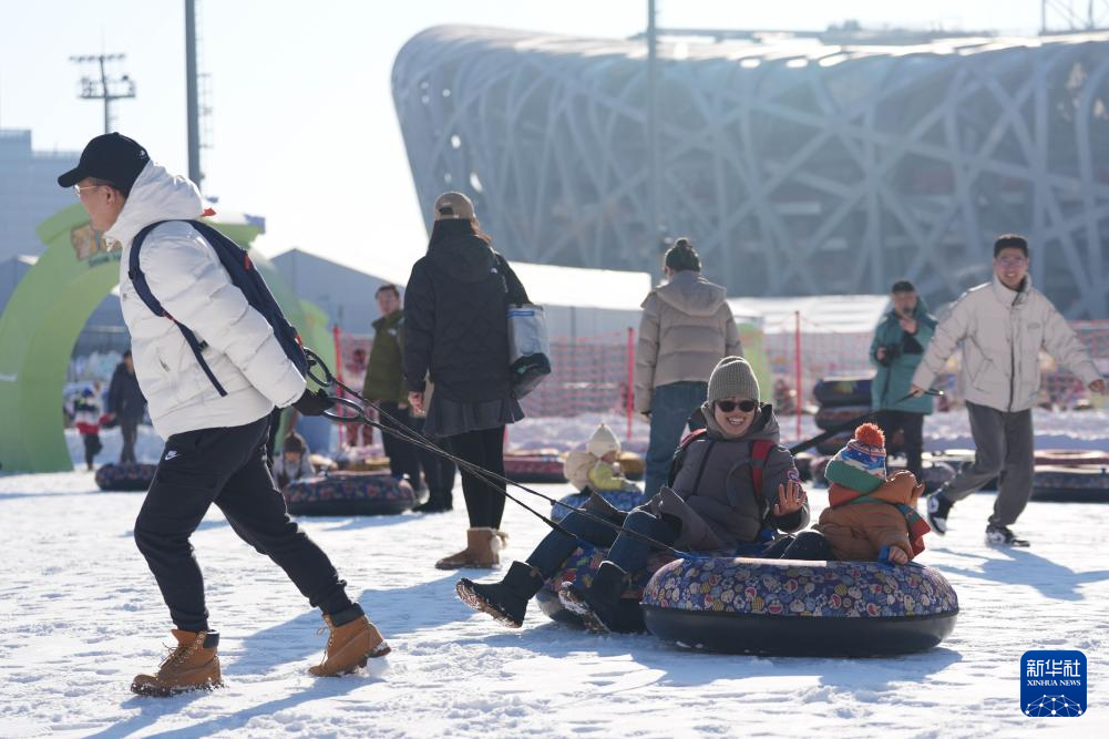 12月27日,游客在鸟巢欢乐冰雪季室外场地游玩。
