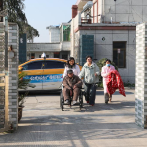 12月28日,在江苏省海安高新区隆政街道德兴村亲上亲养老小院,护理人员迎接外出医院检查身体的老人归来。