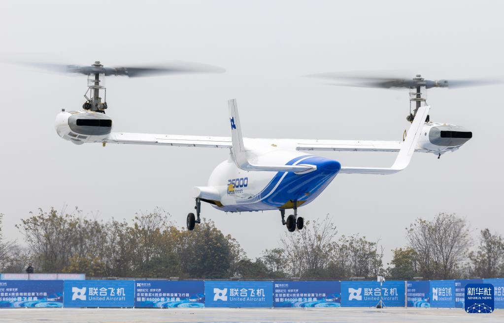 12月28日,6吨级无人倾转旋翼飞行器“镧影R6000”垂直起飞。