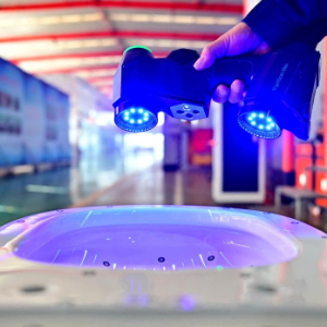 12月28日,工人在河北省唐山市丰南区一家陶瓷机械研发制造企业的生产车间测试卫浴检测仪器。