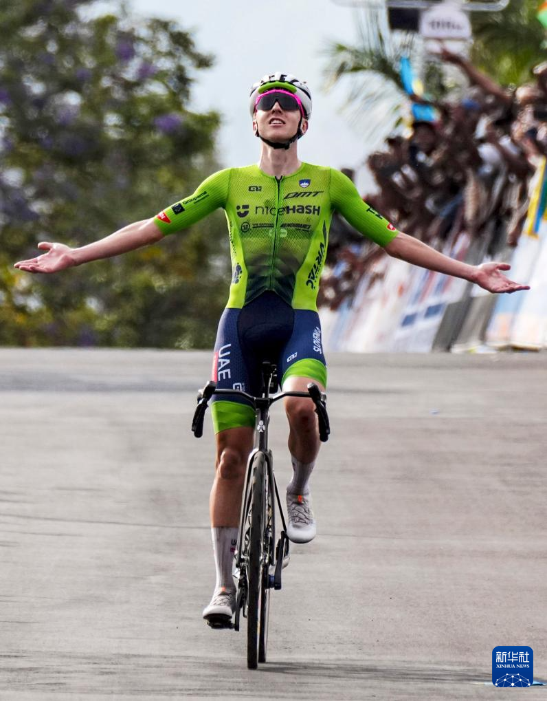这是2025年9月28日,斯洛文尼亚车手塔代伊·波加查在2025年公路自行车世锦赛中冲向终点。最终他夺得男子精英组冠军。