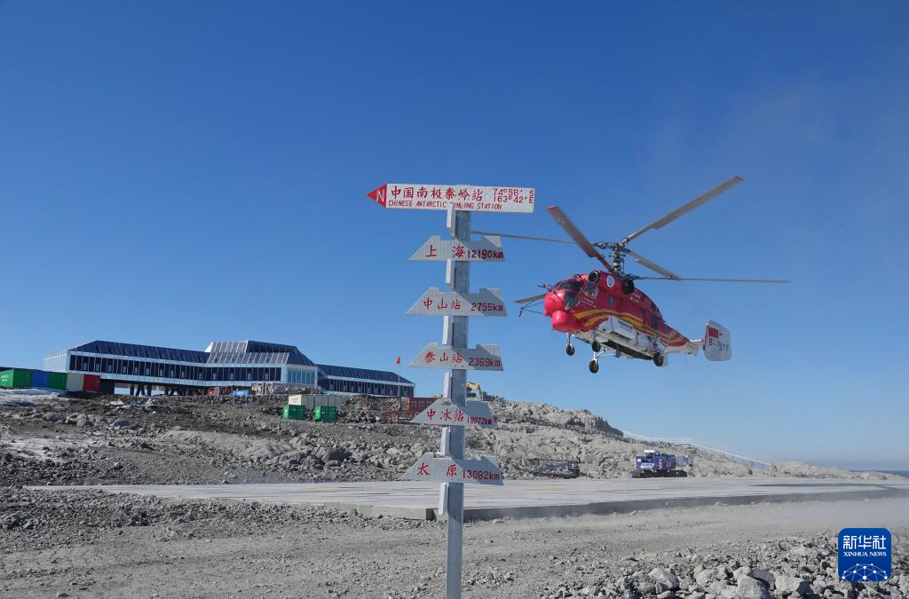 12月29日,“雪鹰102”直升机在秦岭站降落。
