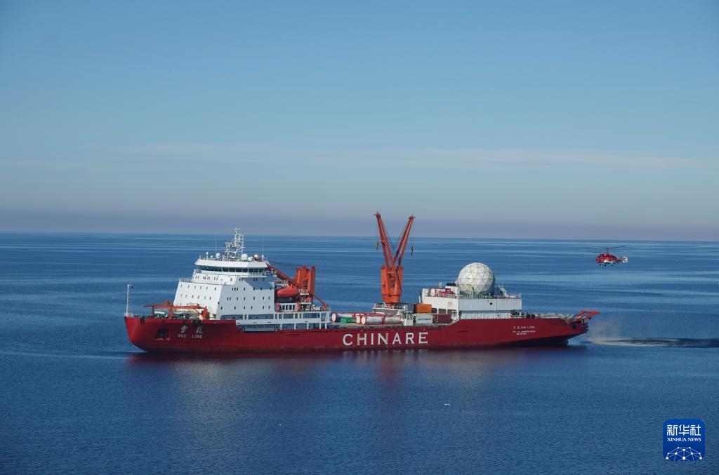 12月29日在秦岭站海域拍摄的“雪龙”号极地科考破冰船。