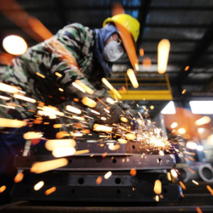 12月29日,江苏省扬州市杨庙镇一家机械制造企业的工人在进行打磨作业。