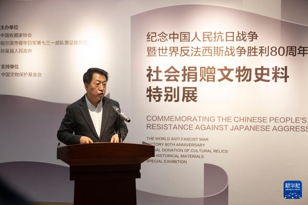 12月31日,“纪念中国人民抗日战争暨世界反法西斯战争胜利80周年——社会捐赠文物史料特别展”开幕式在侵华日军第七三一部队罪证陈列馆举行。据悉,本次展览以“文物为证·铭记历史”为主线,集中展示侵华日军第七三一部队罪证陈列馆系统梳理、严格甄别的社会捐赠的实物器具、文献档案等珍贵文物史料,从不同维度揭露了侵华日军第七三一部队实施细菌战、开展人体实验的反人类罪行。