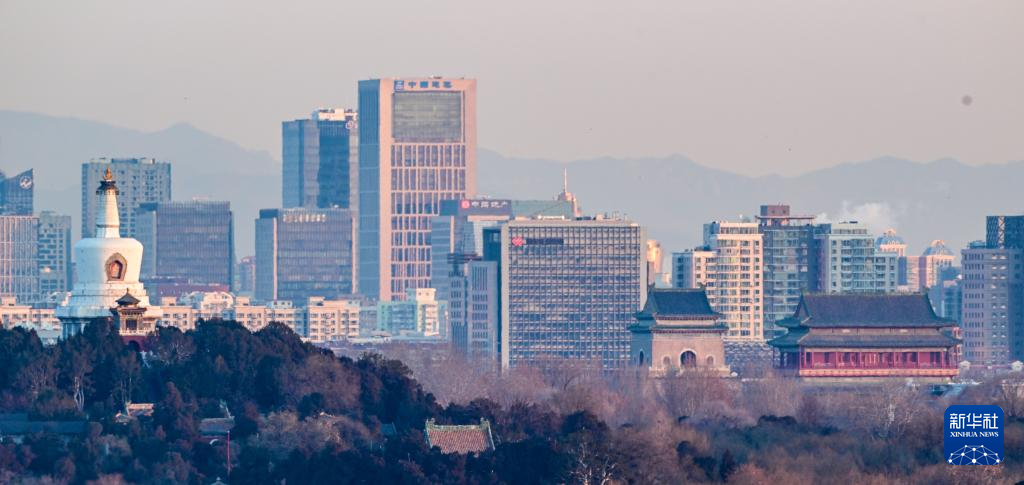 2026年1月1日清晨拍摄的北京钟鼓楼和北海公园白塔。