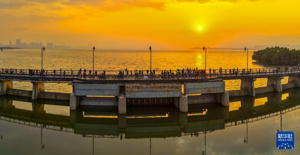 2026年1月1日在云南省昆明市滇池边拍摄的日出。