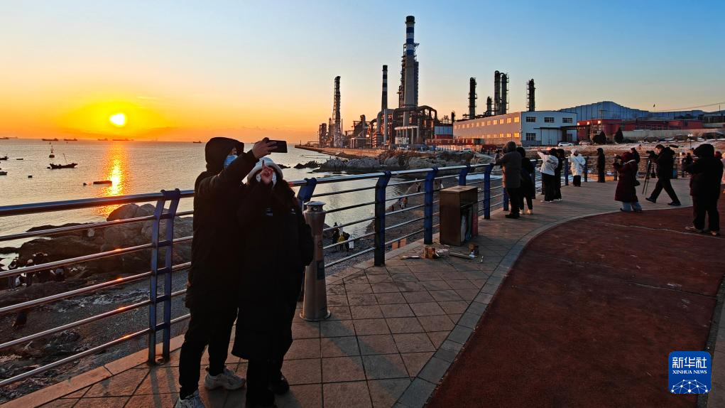 2026年1月1日清晨,辽宁省大连市市民在甘井子区蟹子湾公园拍摄2026年第一缕阳光。