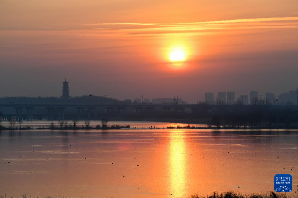 2026年1月1日在河北省石家庄市滹沱河生态区(城区段)拍摄的新年初升的太阳。