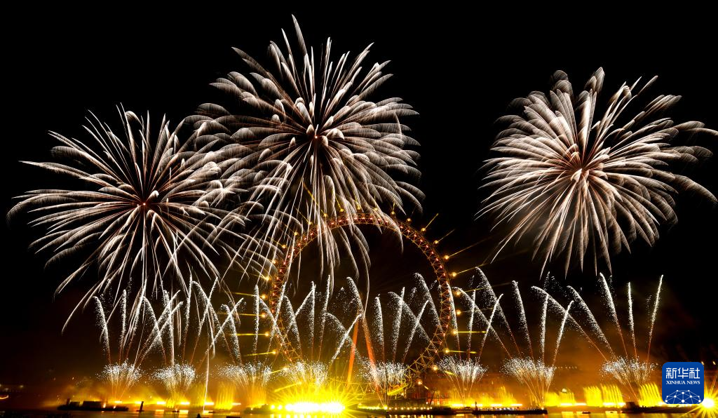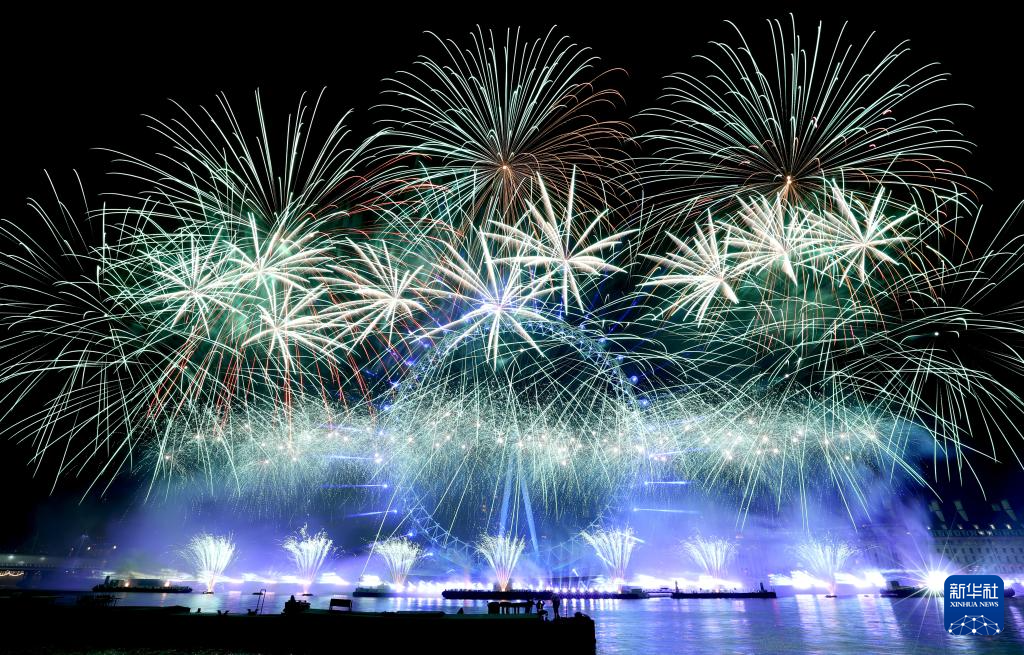 2026年1月1日凌晨,在英国伦敦,新年烟花在伦敦眼绽放。
