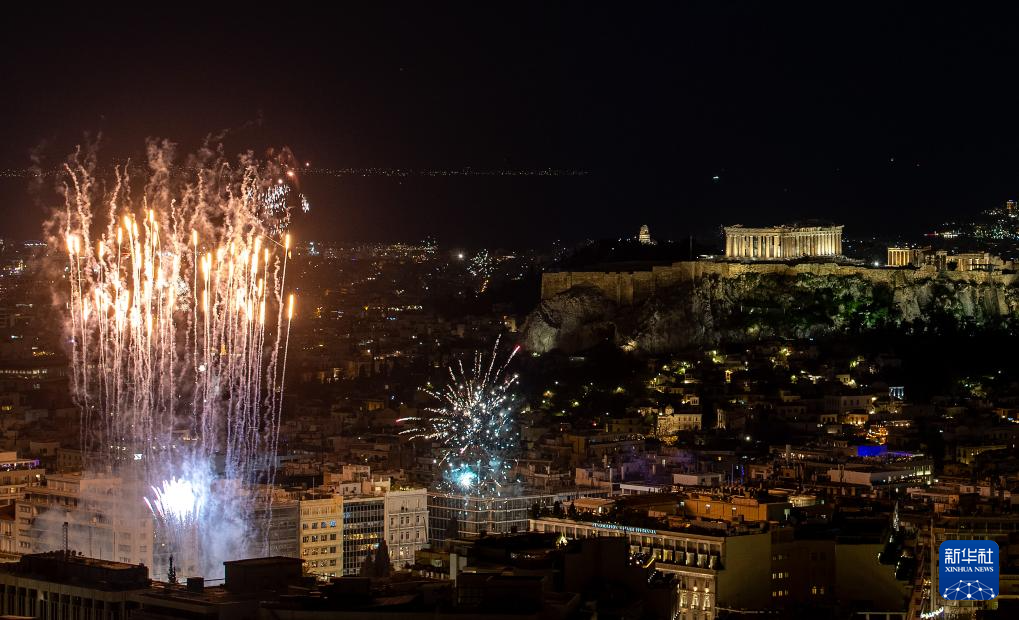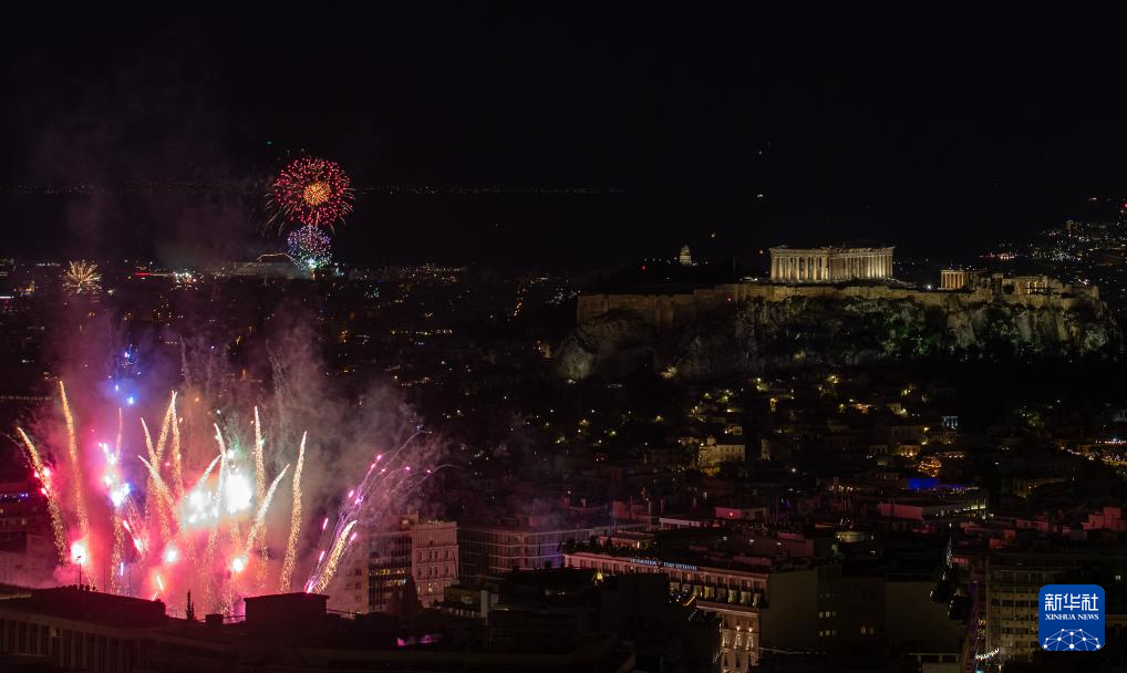 2026年1月1日凌晨,希腊雅典燃放烟花迎接新年。