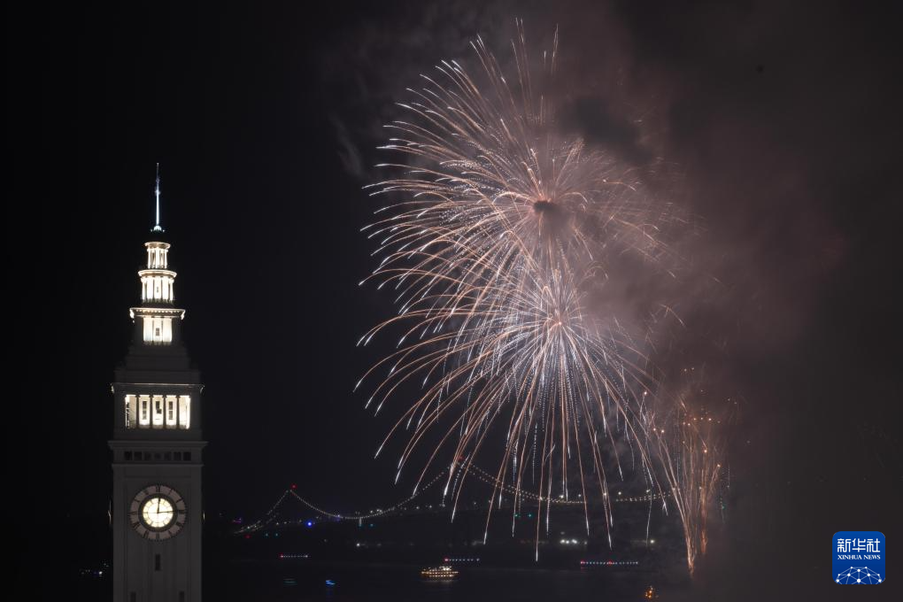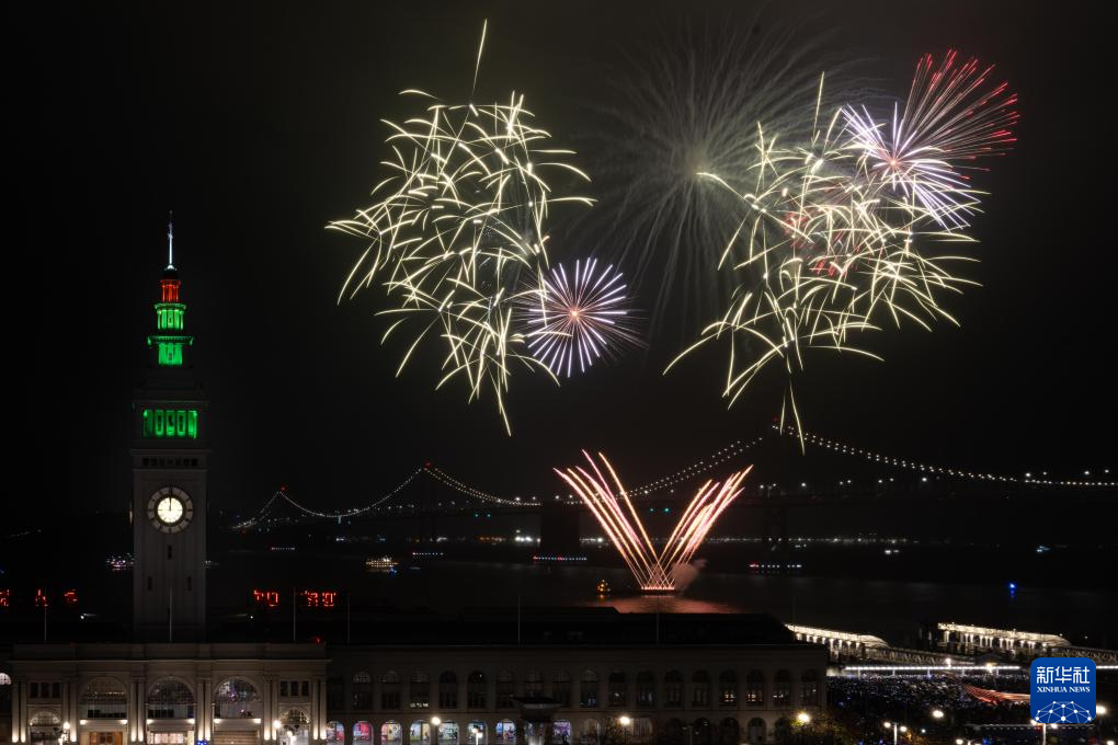 2026年1月1日,新年烟花在美国加利福尼亚州旧金山上空绽放。