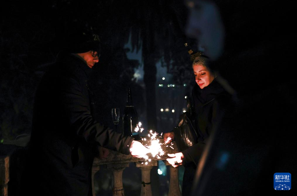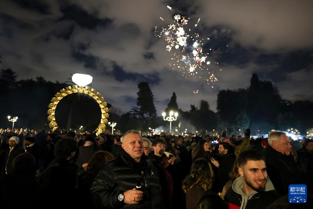 2026年1月1日,人们在意大利罗马苹丘庆祝新年。