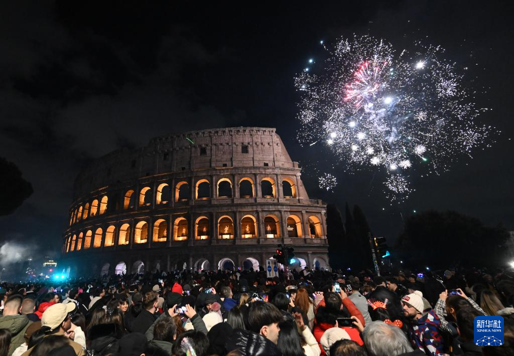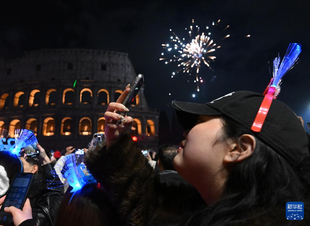 2026年1月1日,人们在意大利罗马斗兽场迎接新年。