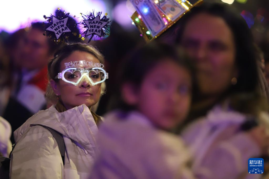 2025年12月31日,人们在墨西哥首都墨西哥城改革大道参加跨年活动,迎接2026年的到来。