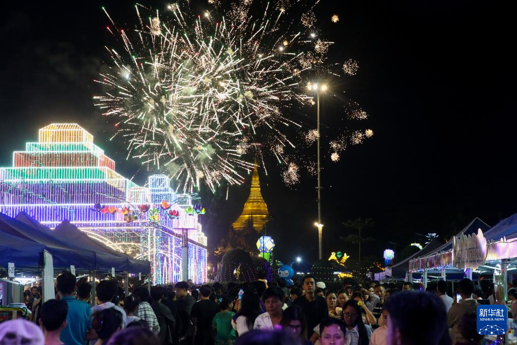 2026年1月1日凌晨,人们在缅甸仰光观赏新年烟花。