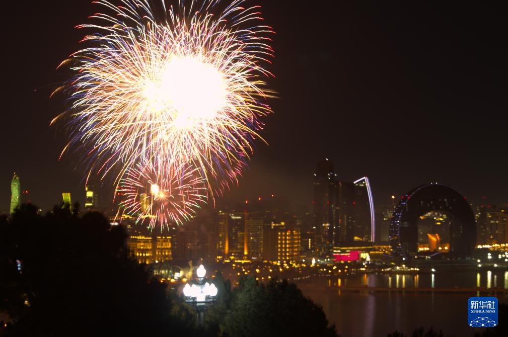 这是2026年1月1日在阿塞拜疆首都巴库拍摄的新年焰火。