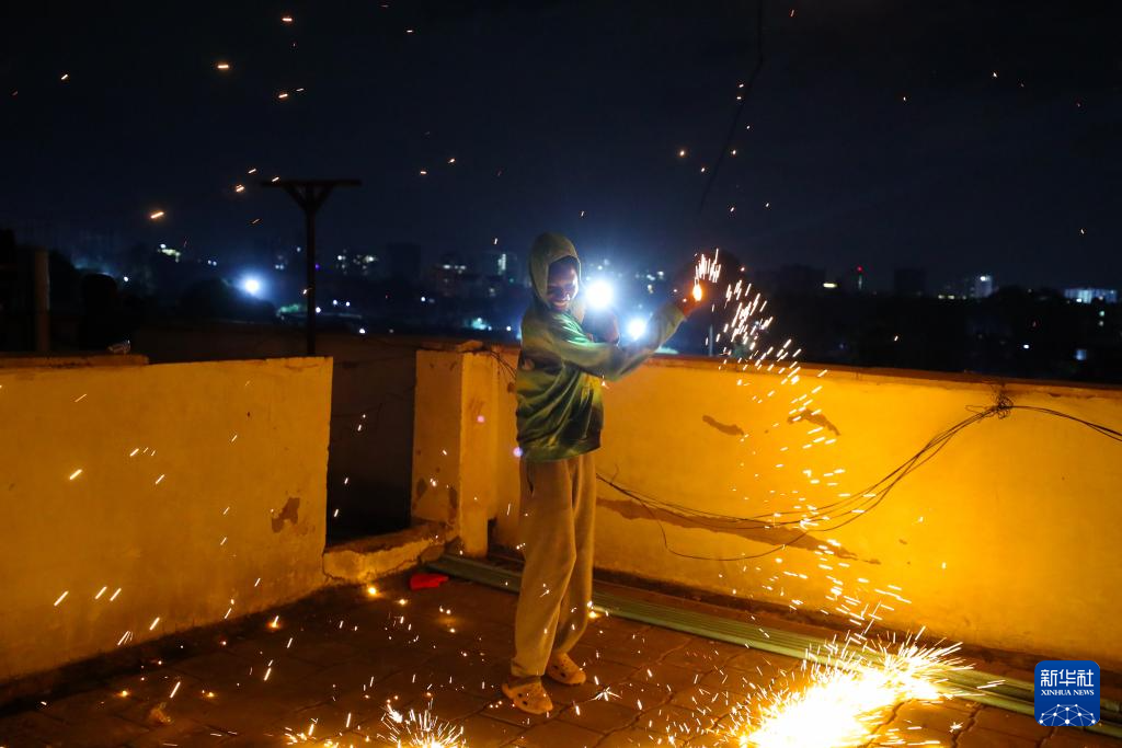 2025年12月31日,一名儿童在肯尼亚首都内罗毕放烟花。
