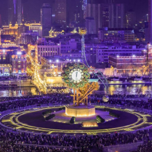 2026年1月1日凌晨拍摄的天津新年楼体灯光秀。
