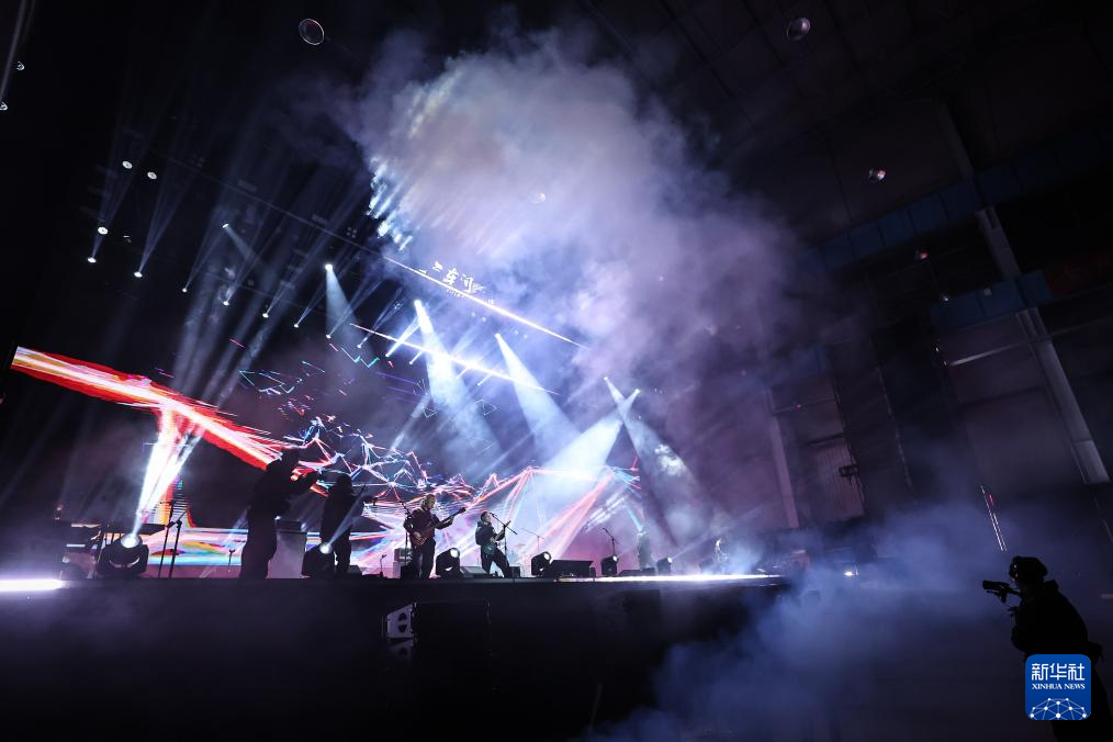 2025年12月31日晚,乐迷在“三车间沈阳工业摇滚音乐节跨年狂欢夜”现场观看表演。