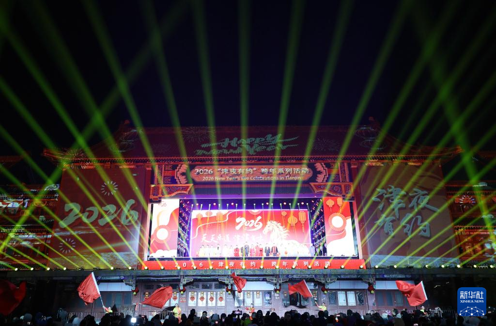 2026年1月1日凌晨在天津市西青区杨柳青古镇拍摄的2026“津夜有约”跨年活动现场。