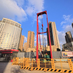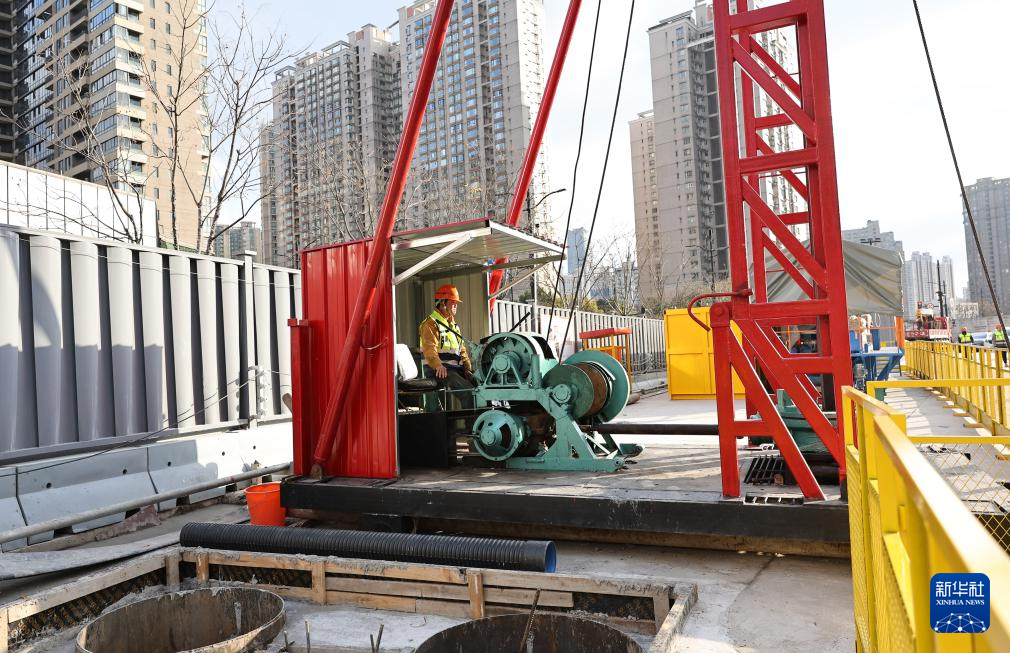 工人在南北通道浦西段四平路工作井施工现场调试运行工程机械(2025年12月30日摄)。
