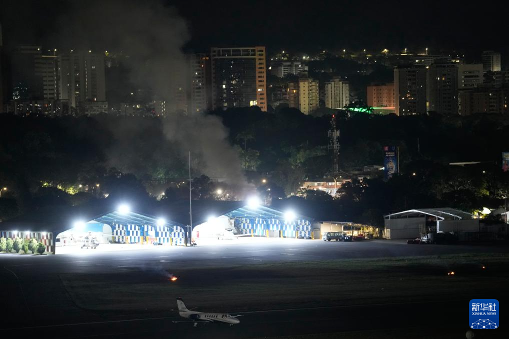 1月3日,委内瑞拉首都加拉加斯拉卡洛塔机场升起浓烟。