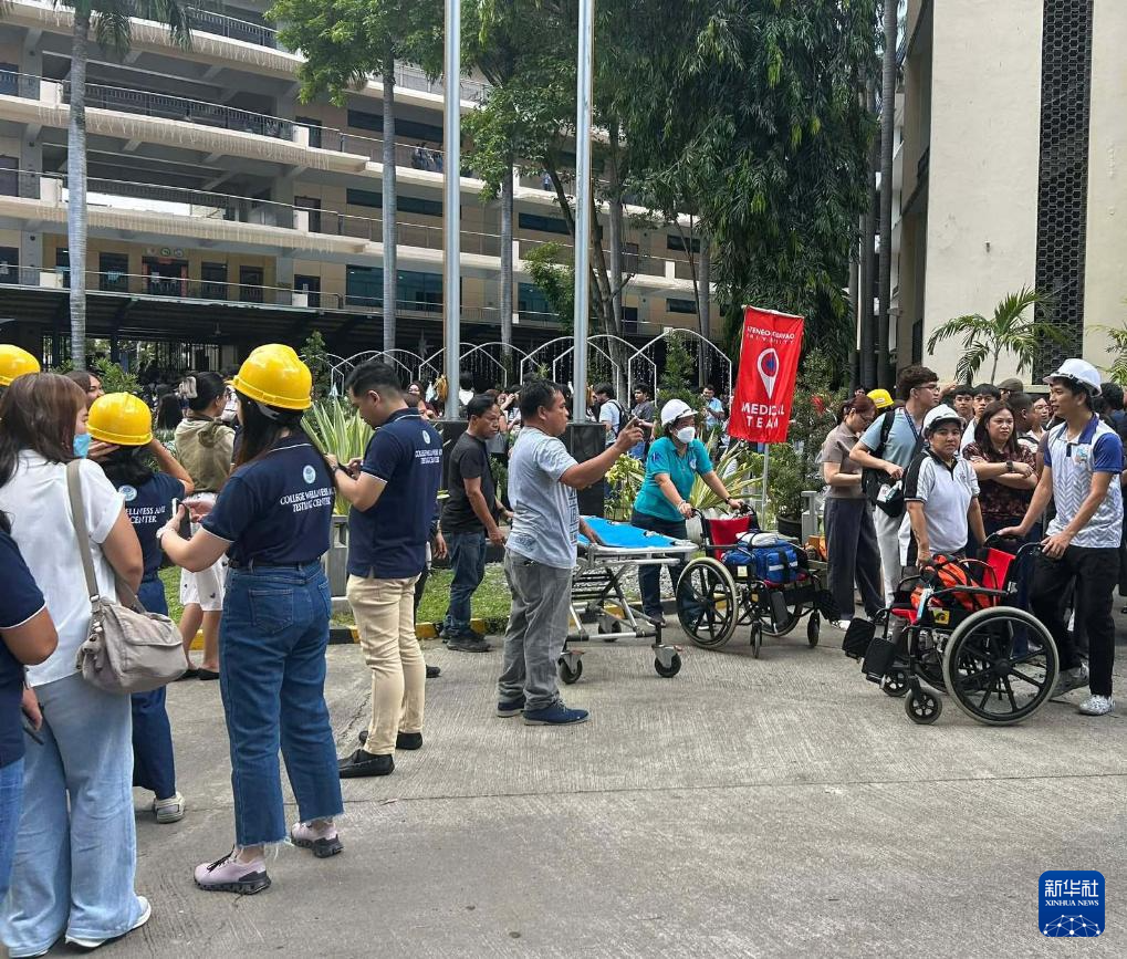 1月7日,在菲律宾南部达沃市一所学校,人们从建筑中撤离至空旷地区。