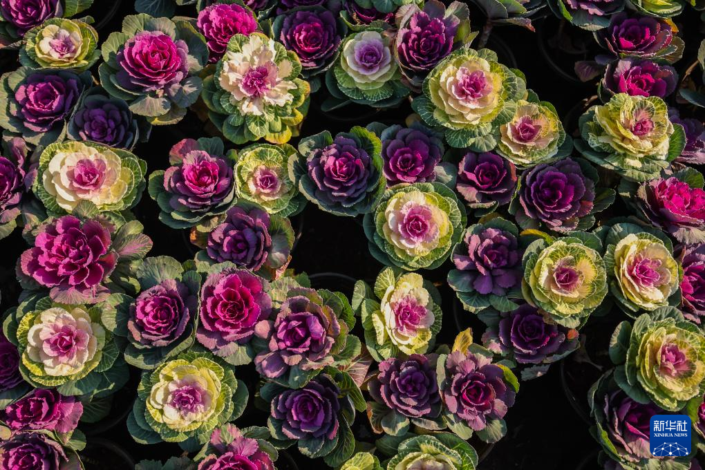 1月8日在澧浦花木城内拍摄的羽衣甘蓝盆景。
