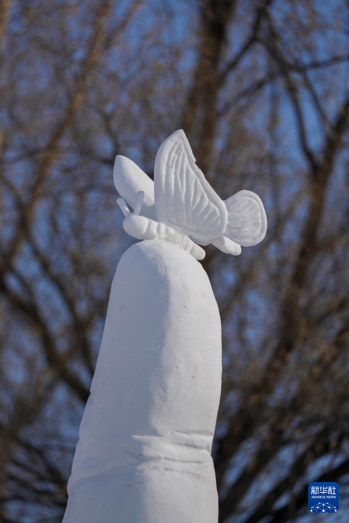 1月9日拍摄的俄罗斯特罗伊茨克队雪雕作品《生命家园》局部。