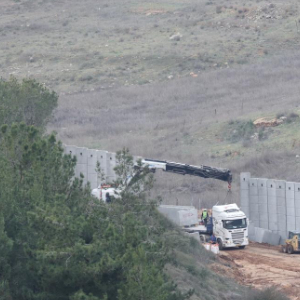 近日,以色列加紧在以黎边境沿线以色列一侧修建混凝土隔离墙。