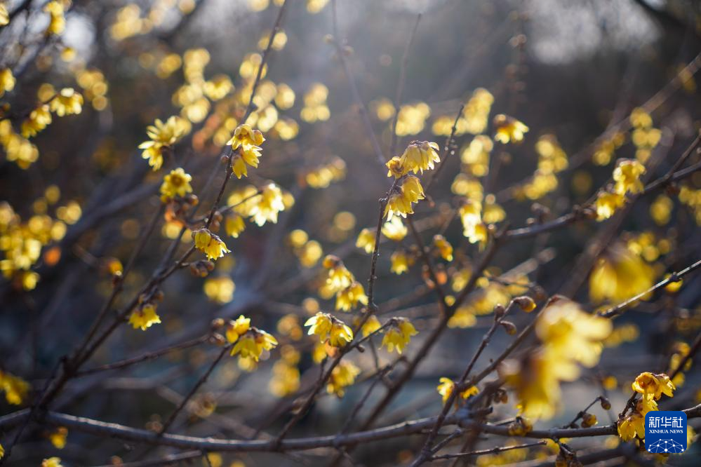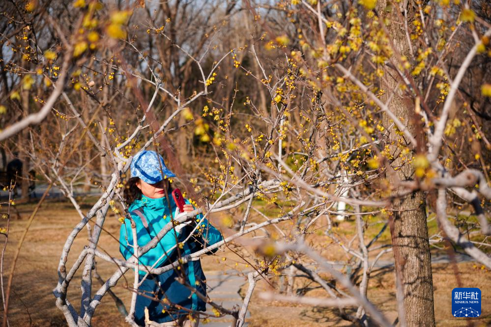 寒冬时节,位于山东济南市千佛山公园腊梅园内的一千多棵腊梅树花朵竞相绽放,吸引众多游客和市民前来欣赏。