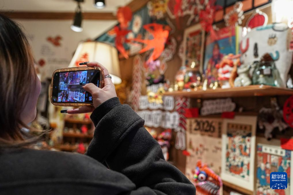 1月13日,游客在翠湖边一家特色书店挑选文创产品。