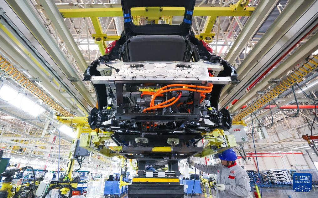 2025年12月30日,在河南省商丘市豫商经济技术开发区现代装备制造产业基地的一家新能源汽车企业,工人在组装车间工作。