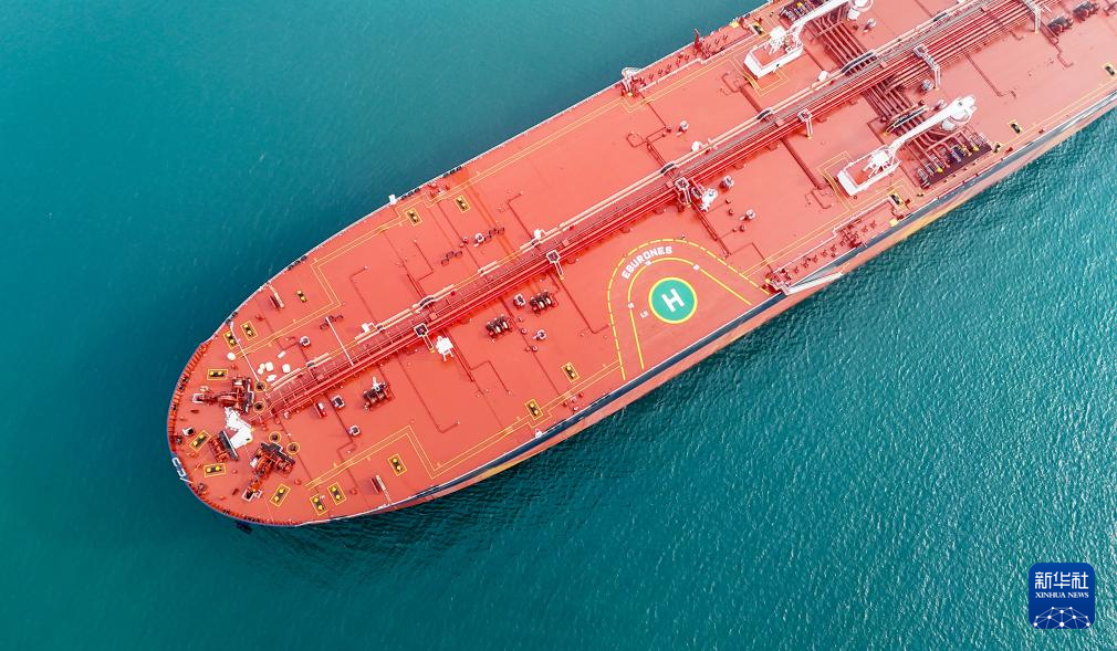 1月14日,31.9万吨氨预留超大型原油船“EBURONES”轮在青岛正式启航(无人机照片)。