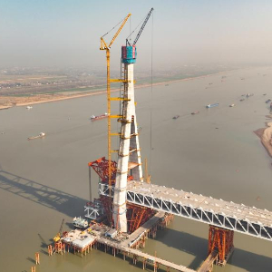1月15日,在安徽省池州市境内,由池州建投集团投资、皖赣铁路安徽公司建设、中铁大桥局承建的池州长江公铁大桥南主塔顺利完成封顶。该主塔高272.7米,相当于90层楼的高度。这也是大桥两座主塔中首个封顶的主塔。池州长江公铁大桥连接池州市贵池区和铜陵市枞阳县,全长3.1公里,其中主桥长1768米,为三主桁三索面双层钢桁梁斜拉桥。