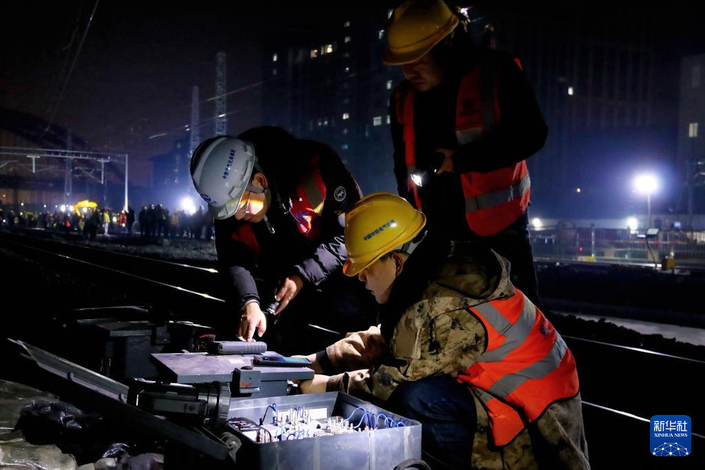 1月16日,中铁电气化局施工人员在进行电路导通试验。