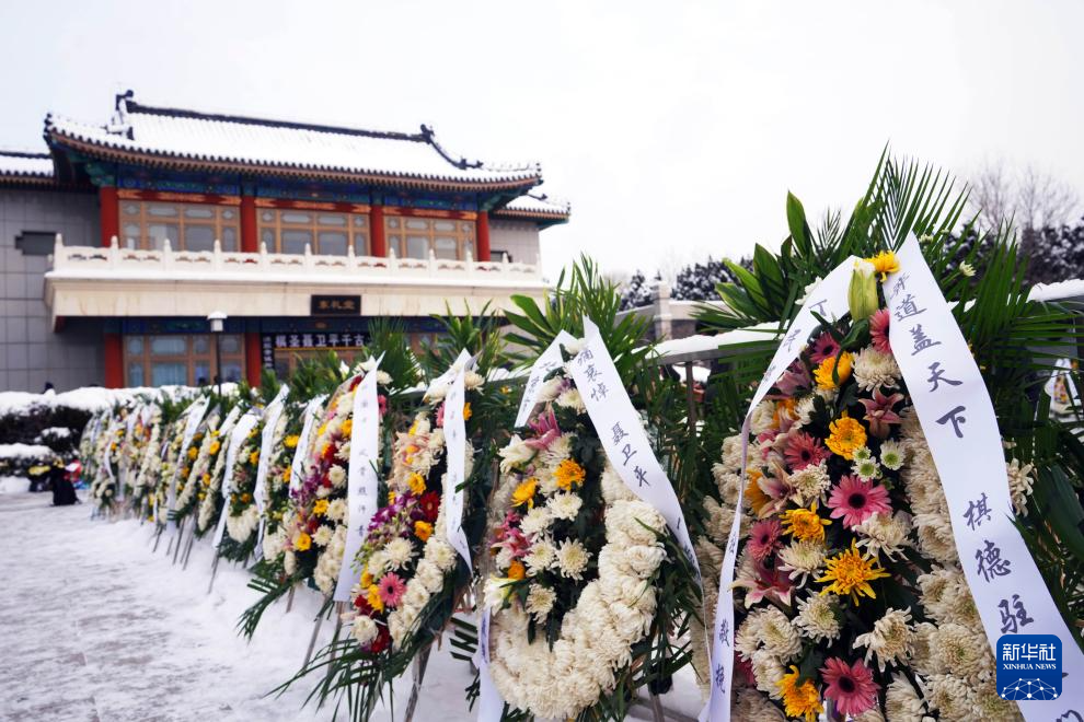 这是1月18日拍摄的聂卫平遗体告别仪式现场外的花圈。