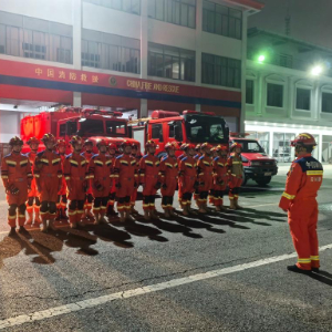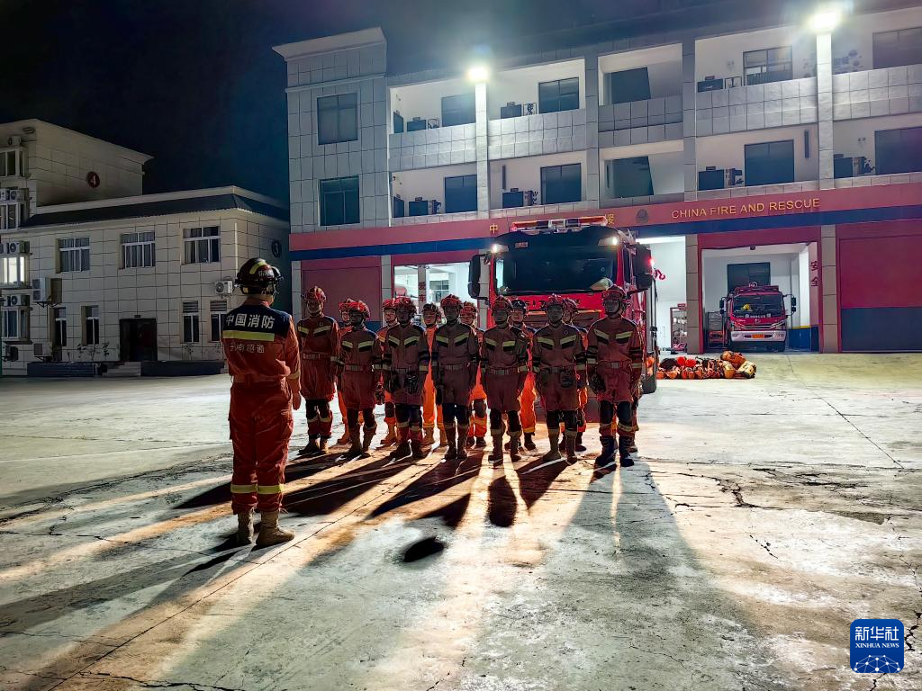 1月19日,当地消防救援力量迅速集结准备赶往地震现场。